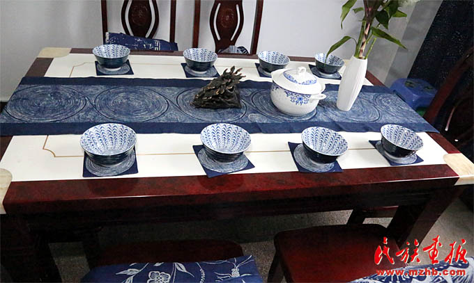 楊文斌老師和她的夫人梁定芳老師都是“非遺”傳承人。現(xiàn)在他們忙著著書、講學、開研討會。談起蠟染、談起民族民間工藝,楊文斌老師滔滔不絕:“現(xiàn)在要從三個方面認識和研究民族民間工藝:一是從歷史學、人類學、民族學的角度解讀,二是從審美學、藝術(shù)視覺理念的角度解讀,三是從工藝學、材料學、技藝學的角度解讀。現(xiàn)在植物染料的加工和染色技藝消失得很快。老祖宗留下的寶貝到我們這代可不能扭曲和斷裂?!?/p>