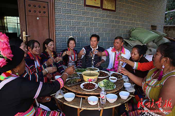 布朗族的節(jié)日,同村的哈尼族來(lái)賀喜