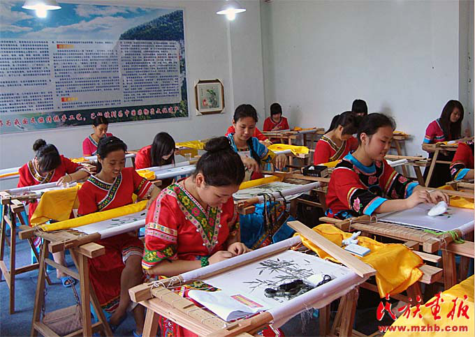 2015年,李紹玉榮獲年度“全國優(yōu)秀農(nóng)民工”。2016年,李紹玉成為重慶非物質(zhì)文化遺產(chǎn)——彭水苗繡的代表性傳承人。從一個(gè)打工女,到回家鄉(xiāng)帶動(dòng)村民致富,再到成為全國人大代表,她說自己深感榮幸和責(zé)任重大?!翱偫韴?bào)告里專門提到‘加強(qiáng)文物保護(hù)利用和文化遺產(chǎn)保護(hù)傳承’,我自己的成長,就得益于此。苗繡是苗族人民古老而美麗的技藝,我們有責(zé)任把它世代傳承下去。我們也要在苗族文化與手工藝術(shù)品融合上下功夫,使傳統(tǒng)工藝與市場(chǎng)結(jié)合、傳統(tǒng)元素與現(xiàn)代時(shí)尚相結(jié)合。”