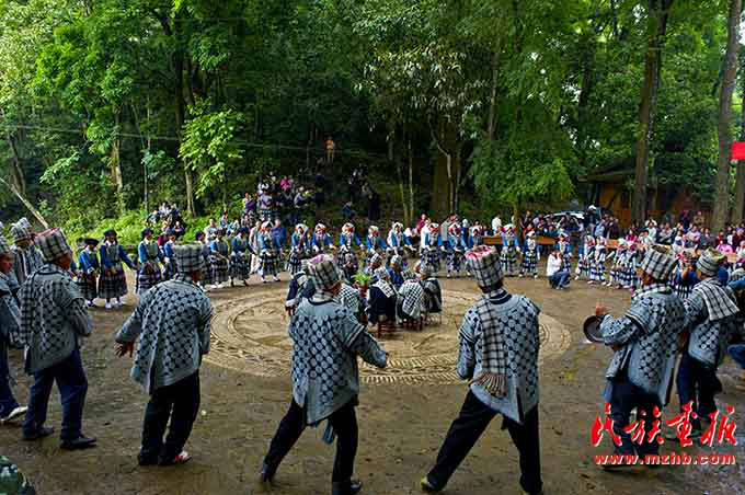 在“寨老”敲響的銅鼓聲里,男人們揮舞著有力的手臂,舞動(dòng)著彪悍的動(dòng)作;姑娘們踏著歡快的鼓點(diǎn),擺手扭腰跳起優(yōu)美的舞蹈;孩子們像林中的小鳥(niǎo),嘰嘰喳喳地在人群中歡呼雀妖;寨里的老人們坐在場(chǎng)地中央,盡情地享受著包谷美酒和美食。