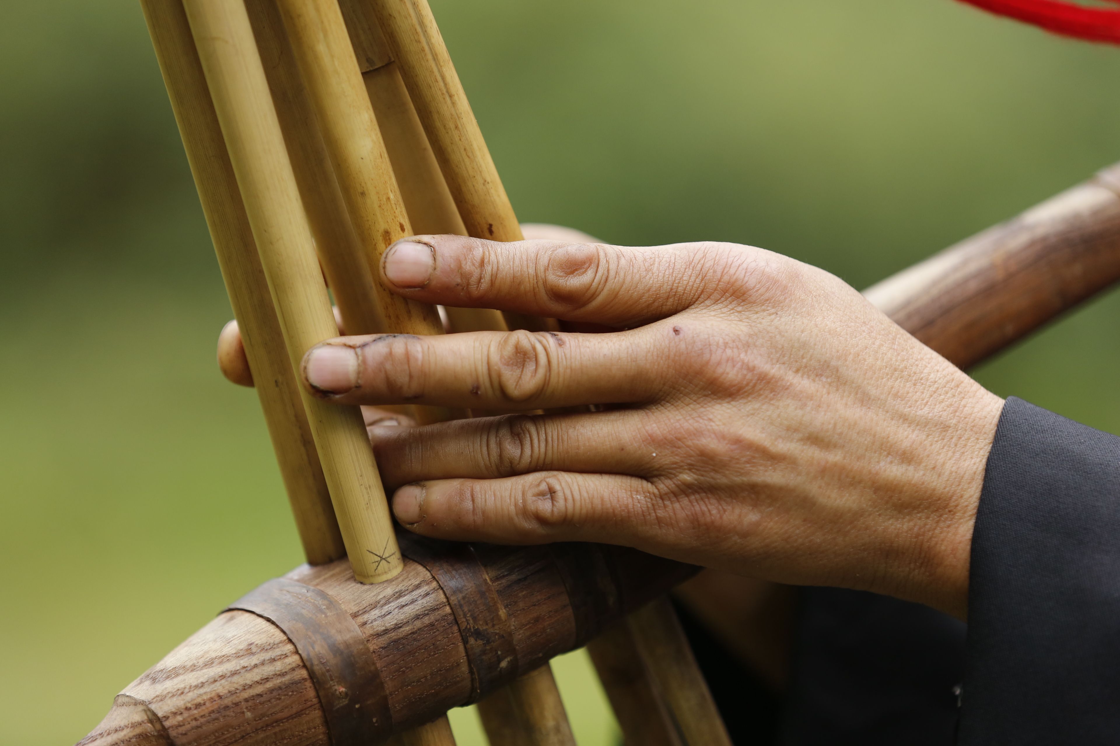 苗族花鼓舞傳承人鄧開(kāi)倫教授他人吹奏蘆笙2