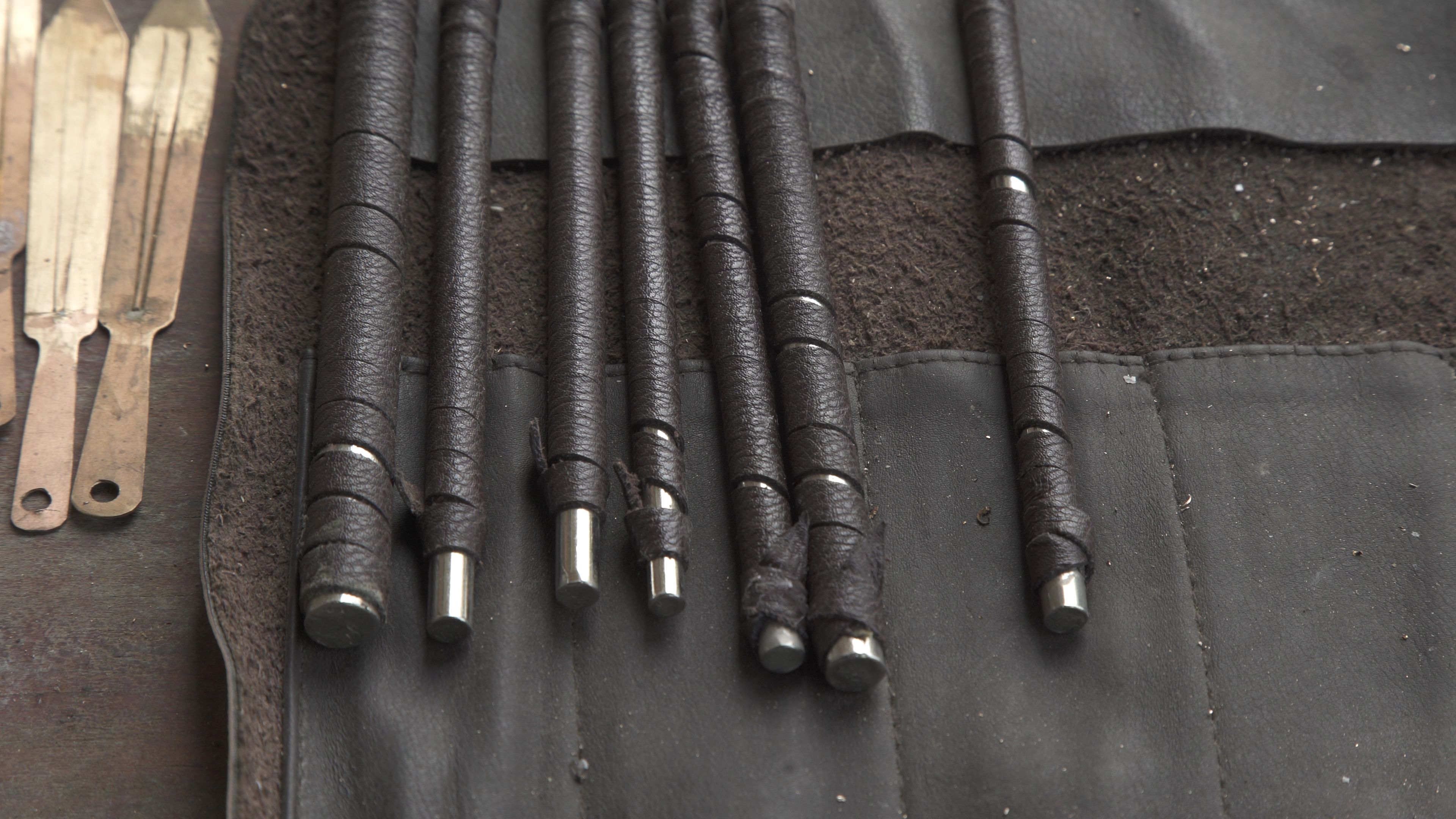 圖片說明:貴州貴陽清鎮(zhèn)市流長鄉(xiāng)腰巖村苗族制作口弦所需工具-鑿子