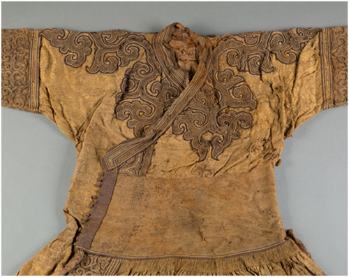 1978年出土于內(nèi)蒙古包頭達(dá)茂旗明水墓的蒙元辮線袍 內(nèi)蒙古博物院館藏一級文物
