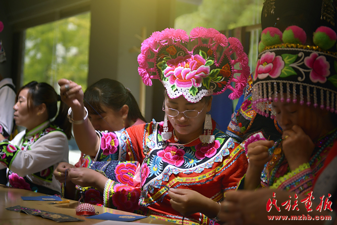 不忘初心,方能遠行。在上下求索創(chuàng)意民族服飾的同時,盧潔瑩不忘致力于彝族傳統(tǒng)文化的發(fā)揚與傳播。2016年起,索玉文化美學創(chuàng)意有限公司與楚雄市婦聯(lián)、彝繡協(xié)會共同主辦的,旨在幫助楚雄山區(qū)彝族婦女用傳統(tǒng)手工技藝精準扶貧的培訓項目“彝繡之夢”已開展了兩年。“創(chuàng)業(yè)不易,要致富也要帶動各族同胞一起致富?!北R潔瑩說,“我們的培訓班每年都開辦,就是要幫助繡女們走出大山,走進大眾的視角,提供一個給她們展示與發(fā)掘精美彝繡技藝的平臺。”