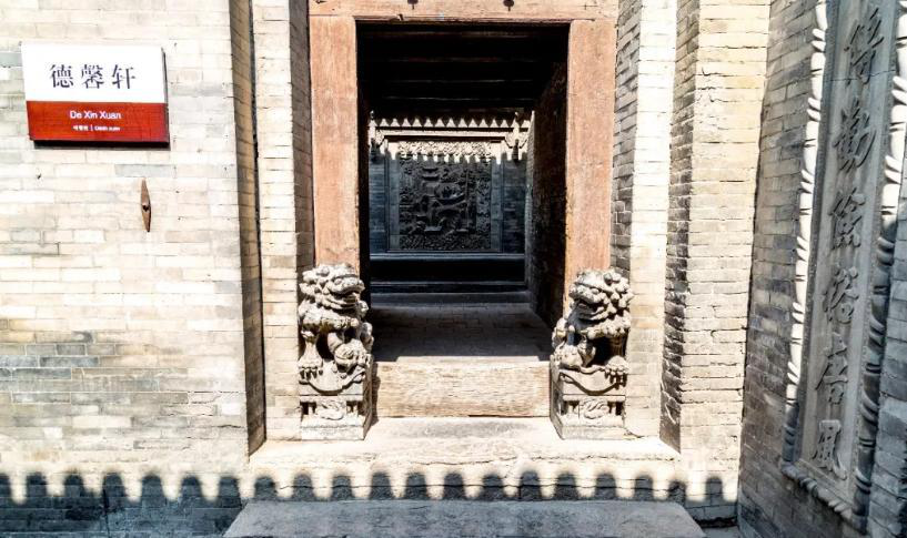 正廳大門之上的門楣,是一塊精美絕倫的木雕,采用雕、嵌、描、繪等多種裝飾技法,將喜鵲鬧春的場(chǎng)景表達(dá)得惟妙惟肖,具有極高的藝術(shù)價(jià)值;除了雕刻著代表中國(guó)傳統(tǒng)文化精神的梅蘭竹菊外,許多地方的門窗,尤其是專供男孩子們讀書的庭院中的窗子,都雕成簡(jiǎn)潔古樸的書本或折扇的形狀,表達(dá)了“萬(wàn)般皆下品,唯有讀書高”的文化追求。
