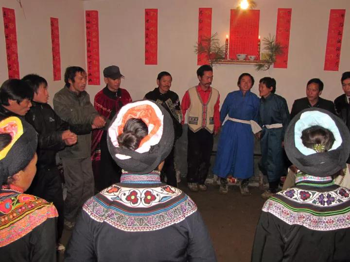 4、阿買(mǎi)懇的民俗價(jià)值。阿買(mǎi)懇的僅程序性的禮儀就幾十項(xiàng),里面有提及了許多禮俗方面的知識(shí),如司禮堂(濯嘎)的門(mén)要設(shè)三道,每道的位置都很講究,還有根據(jù)身份設(shè)座次,座次也很規(guī)矩,敬酒也專(zhuān)門(mén)有敬酒的禮儀等。因此,通過(guò)研究阿買(mǎi)懇,就可以窺探彝族的許多禮俗了。