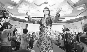 2012年12月,由全國《格薩(斯)爾》工作領(lǐng)導(dǎo)小組辦公室、青海省《格薩爾》工作領(lǐng)導(dǎo)小組辦公室等聯(lián)合主辦的中國·青海·果洛《格薩爾》藝人成果展暨圓光中的《格薩爾》史詩藝術(shù)展在北京舉行。圖為開幕式上模特在展示《格薩爾》史詩中所描述的民族傳統(tǒng)服裝。 資料圖片
