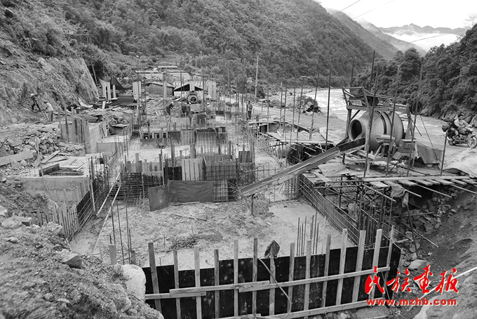 澆筑中的水電站廠房基礎(chǔ)