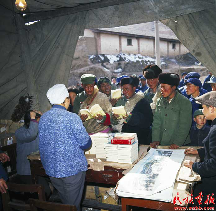 1978年5月,《光明日報(bào)》發(fā)表的特約評論員文章《實(shí)踐是檢驗(yàn)真理的唯一標(biāo)準(zhǔn)》掀起了席卷中國的真理標(biāo)準(zhǔn)大討論。1978年12月18日至22日,黨的十一屆三中全會在北京舉行。全會作出了把黨和國家的工作重點(diǎn)轉(zhuǎn)移到經(jīng)濟(jì)建設(shè)上來、實(shí)行改革開放的歷史性決策,實(shí)現(xiàn)了新中國成立以來黨的歷史上具有深遠(yuǎn)意義的偉大轉(zhuǎn)折。同年11月,青海省委宣傳部召開大會,為在“文革”中被打成“大毒草”的藏族史詩《格薩爾》徹底平反。圖為藏族群眾喜購《格薩爾王傳》(中國民族圖片庫資料)