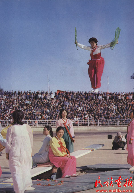 1982年9月2日至8日,第二屆全國少數(shù)民族傳統(tǒng)體育運(yùn)動會在內(nèi)蒙古呼和浩特舉行,圖為朝鮮族婦女展示傳統(tǒng)游戲項(xiàng)目——跳板。全國少數(shù)民族傳統(tǒng)體育運(yùn)動會發(fā)掘了一大批新項(xiàng)目,并在探索普及與提高結(jié)合、群眾性與專業(yè)化結(jié)合、傳統(tǒng)體育與現(xiàn)代體育結(jié)合、民族性與世界性結(jié)合的道路上取得了可喜的進(jìn)步,使少數(shù)民族傳統(tǒng)體育走上了普及、提高、規(guī)范、科學(xué)的道路。目前全國少數(shù)民族傳統(tǒng)體育運(yùn)動會已經(jīng)舉辦了十屆《民族畫報(bào)》1982年第12期