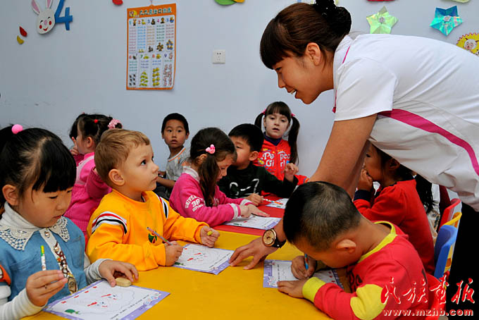 共建“一帶一路”是以習(xí)近平同志為核心的黨中央著眼于我國改革開放和長遠(yuǎn)發(fā)展提出的重大國際合作倡議。隨著邊境往來不斷密切,周邊國家越來越多的人選擇到中國來學(xué)習(xí)文化,客觀上增進(jìn)了感情。圖為2017年俄羅斯的小朋友在吉林琿春學(xué)習(xí)中國文化。《民族畫報(bào)》2017年第4期