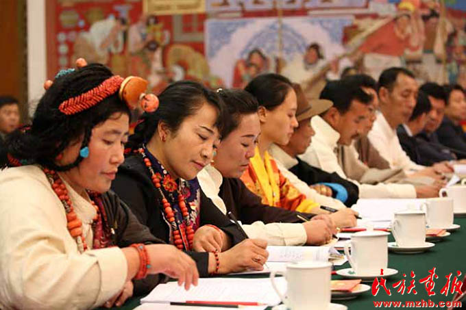 2017年10月18日,在中國共產(chǎn)黨第十九次全國代表大會上,習(xí)近平鄭重宣示:“經(jīng)過長期努力,中國特色社會主義進(jìn)入了新時(shí)代,這是我國發(fā)展新的歷史方位?!笔糯髨?bào)告中,習(xí)近平用五句話深刻揭示了新時(shí)代的內(nèi)涵,指出這個新時(shí)代,是承前啟后、繼往開來、在新的歷史條件下繼續(xù)奪取中國特色社會主義偉大勝利的時(shí)代,是決勝全面建成小康社會、進(jìn)而全面建設(shè)社會主義現(xiàn)代化強(qiáng)國的時(shí)代,是全國各族人民團(tuán)結(jié)奮斗、不斷創(chuàng)造美好生活、逐步實(shí)現(xiàn)全體人民共同富裕的時(shí)代,是全體中華兒女勠力同心、奮力實(shí)現(xiàn)中華民族偉大復(fù)興中國夢的時(shí)代,是我國日益走近世界舞臺中央、不斷為人類作出更大貢獻(xiàn)的時(shí)代。圖為席黨的十九大的西藏自治區(qū)代表團(tuán)代表在討論十九大報(bào)告。《民族畫報(bào)》2017年第11期