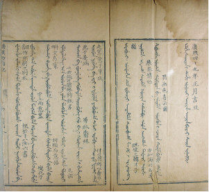 河北民族師范學(xué)院滿族非遺教學(xué)傳承中心是目前國(guó)內(nèi)最大的滿族非遺與滿學(xué)教學(xué)研究單位。為了整理保護(hù)滿文資料,2017年至2018年,該中心進(jìn)行了一期滿文古籍整理工作,共整理滿文古籍(包括一部分滿漢、滿蒙、滿蒙漢),如《資治通鑒綱目》《欽定翻譯詩(shī)經(jīng)》《欽定翻譯易經(jīng)》《百條》《圣諭廣訓(xùn)》等共165部,272冊(cè)。整理工作采用電腦高清去污技術(shù),每?jī)?cè)印20本。作為圖書(shū)館特殊館藏資料,中心將書(shū)目錄入圖書(shū)管理系統(tǒng),供學(xué)者、學(xué)生們借閱、研究。