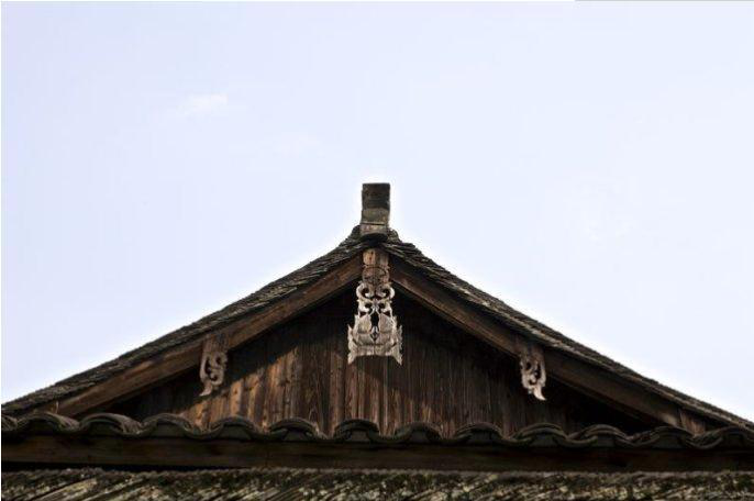 隨著時間流轉,懸魚在匠人時代里閃轉騰挪,歷經(jīng)了由簡到繁的造型征途,也從功能構件升華為裝飾構件。同舊時的其他建筑構件一樣,懸魚在實際功用與藝術創(chuàng)造間轉徙。因此,它最先考慮了對木結構的保護,之后才生出裝飾作用等枝蔓。懸魚覆蓋在博風板合角處的罅隙位置,不僅保護了合角處不受雨雪侵襲,同時可以美化接縫。懸掛后,也從結構上起到了穩(wěn)定博風板的作用,同時還庇護了檁條端頭,有效地防止了木制建筑過早斑駁。時至今日,懸魚已然成為傳統(tǒng)建筑中結構性與裝飾性完美融合的一種構件,更是祖先智慧的一種體現(xiàn)。