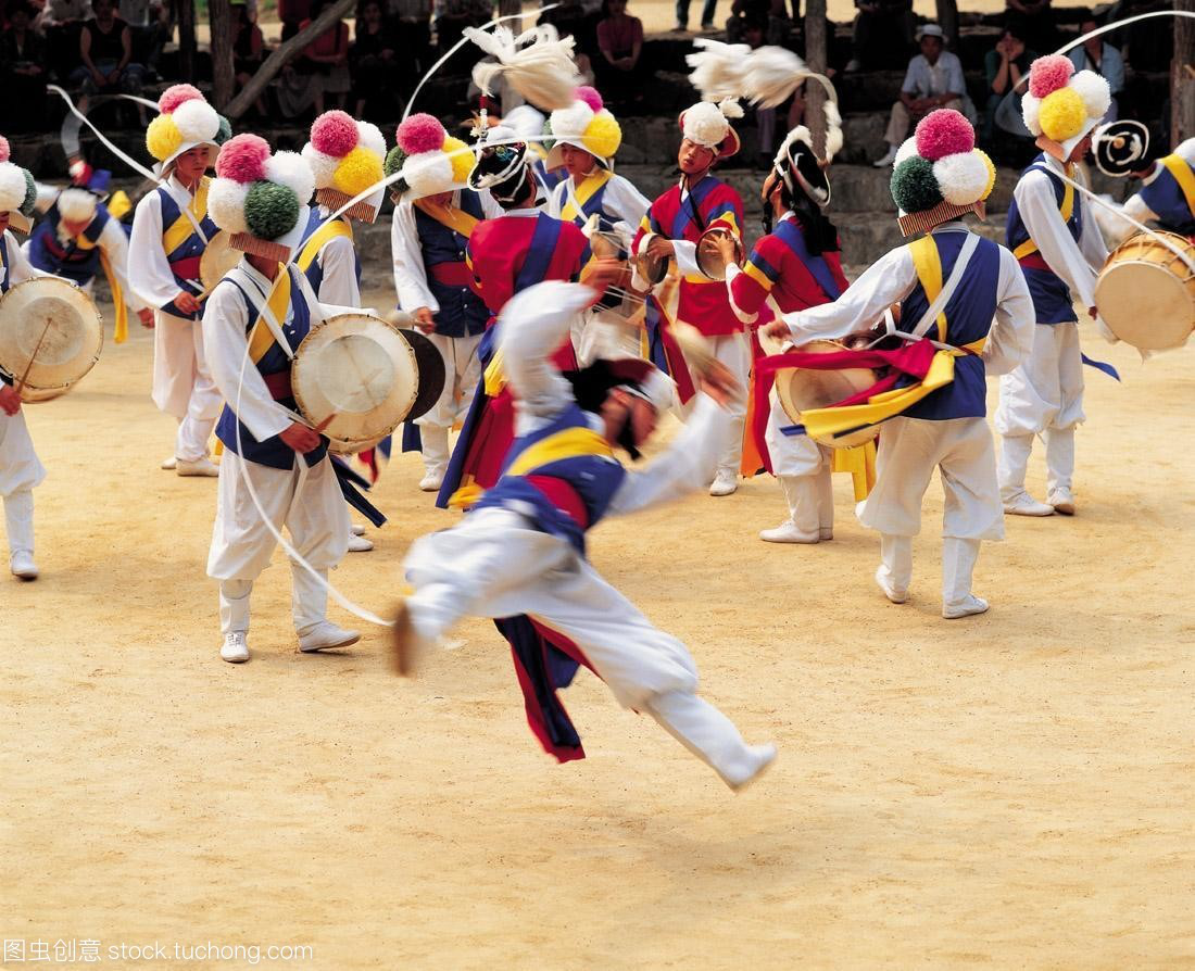 說起朝鮮族的四物樂就不得不先說朝鮮民族民俗音樂文化產(chǎn)生的背景。通過眾多資料可以看出,朝鮮民族文化可以追溯到新石器時代。在古代前期的音樂文化主要是原始共同體社會里祭天儀式中的樂歌舞,也就是初步的器樂、聲樂以及舞蹈三位合一的表現(xiàn)形態(tài)。