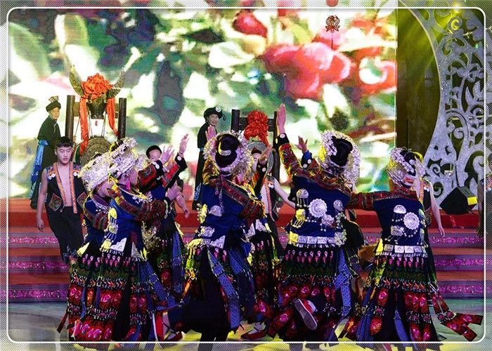 中國苗族網(wǎng)訊 2019年1月19日,由貴州省社科聯(lián)、貴州民族大學(xué)指導(dǎo),貴州省苗學(xué)會主辦,貴陽市苗學(xué)會、六盤水市苗學(xué)會、安順市苗學(xué)會、畢節(jié)市苗學(xué)會、銅仁市苗學(xué)會、黔西南州苗學(xué)會、黔東南州苗學(xué)會、黔南州苗學(xué)會、貴安新區(qū)苗學(xué)會、多彩貴州城建設(shè)經(jīng)營有限公司共同協(xié)辦的“迎新春-蝶韻楓彩鼓聲來”2019春節(jié)聯(lián)歡晚會,在貴州省貴陽市“多彩貴州城”展示中心隆重舉辦。貴州省9個州市及貴安新區(qū)苗族、布依族、侗族、土家族、彝族、仡佬族、水族、回族、白族、瑤族、壯族、毛南族、蒙古族、仫佬族、羌族、滿族等17個少數(shù)民族載歌載舞歌盛世,歡天喜地迎新春。 應(yīng)邀出席春晚的領(lǐng)導(dǎo)嘉賓有貴州省人大常委會原副主任、省苗學(xué)會老會長楊光林,以及貴州省人大常委會,貴州省社科聯(lián),貴州省民政廳,貴州省政協(xié),貴州民大,貴州省政協(xié),貴州省文化和旅游廳,貴州省總工會,貴州省文聯(lián)、貴州省人大、省委宣傳部、省民政廳,民宗委,社科聯(lián),貴州省八大民族學(xué)會的相關(guān)領(lǐng)導(dǎo)等應(yīng)邀出席并觀看演出。 春晚得到了貴州省委宣傳部領(lǐng)導(dǎo)關(guān)心,省委常委、省委宣傳部慕德貴部長對晚會專門作出重要批示,要求把春晚打造成一臺“思想性、藝術(shù)性、觀賞性統(tǒng)一的文藝晚會,豐富春節(jié)期間群眾性精神文化生活,營造歡樂、喜慶、團(tuán)結(jié)、祥和的節(jié)日氛圍”。 晚會緊扣“同心共筑中國夢,中華民族一家親”主題,圍繞共同團(tuán)結(jié)奮斗、共同繁榮發(fā)展主題,繼承和弘揚中華民族優(yōu)秀傳統(tǒng)文化,積極展示貴州少數(shù)民族同胞改革開放40周年來翻天覆地的新變化,用少數(shù)民族原生態(tài)歌舞形式歌頌黨、歌頌祖國、歌頌民族大團(tuán)結(jié)。春晚節(jié)目,由貴州省各州市國家非遺保護(hù)節(jié)目、在中央春晚節(jié)目,由貴州省各州市國家非遺保護(hù)節(jié)目、在中央級、省市級比賽中獲獎的各民族原生態(tài)蘆笙舞、錦雞舞、銅鼓舞、板凳舞,苗族飛歌、古歌、大歌、情歌、絕技;民族盛裝走秀;非遺文化展示等26個節(jié)目組成。 晚會由240位貴州各地苗族演員,50位苗族、布依族、侗族、仡佬族、彝族、土家族、回族等17個少數(shù)民族演員,在主持人的開場白介紹中,手持燈花、衣著盛裝在鼓點笙曲中步入會場。 接著,被國內(nèi)外譽(yù)為“東方迪斯科”的黔東南州臺江《反排木鼓舞》拉開笙鼓迎春的序幕,雷山國家級非遺節(jié)目《掌坳銅鼓舞》、《錦雞舞》,貴陽市花溪區(qū)《花鼓舞》、貴安新區(qū)原生態(tài)蘆笙舞《花坡韻》、黔南州《鼓龍鼓虎-長衫龍》、兒童舞蹈《跺月亮》、畢節(jié)市納雍縣蘆笙舞《滾山珠》、凱里原生態(tài)合唱《春之歌》、安順留守兒童合唱團(tuán)《又見桃花開》、金竹樂隊蘆笙組合《酒歌》、銅仁市絕技《紙上飛仙》、黔西南州《板凳舞》等,一個個節(jié)目精彩絕倫、美輪美奐,舞出少數(shù)民族同胞“美起來、笑起來、富起來、強(qiáng)起來”的精神風(fēng)貌、音容笑貌。最后,貴州省17個世居少數(shù)民族240名演員齊唱《愛我中華》,在“五十六個民族五十六朵花,五十六個兄弟姐妹是一家”的歌聲中把整臺晚會推向高潮,拉下帷幕。 此次春晚民族文化濃厚、明星歌手薈萃、演員陣容龐 此次春晚民族文化濃厚、明星歌手薈萃、演員陣容龐大、節(jié)目精彩絕倫。這些節(jié)目,涵蓋了東部方言、中部方言和西部方言各民族支系。遍及黔東南州、黔西南州、黔南州、貴陽市、安順市、畢節(jié)市、六盤水市、銅仁市和貴安新區(qū)。老藝術(shù)家榜香、青年歌手阿幼朵、潘興周、雷艷、楊一方、阿娜丹、歐桑、楊佳茜、楊祖桃、楊思雨、楊廷勇、吳敏成、阿蕾倩、余秋陽、阿依三姐妹、谷阿斯組合、阿依山娃組合等20多名少數(shù)民族歌星紛紛登臺獻(xiàn)藝,演員達(dá)300余人。 貴州省人大常委會原副主任、貴州省苗學(xué)會老會長楊光林說,春晚的舉辦,有利于提高民族同胞的戰(zhàn)斗力、凝聚力、感召力!春晚牢牢把握了“百姓富、生態(tài)美”兩條底線,通過晚會形式,吹響了少數(shù)民族同胞在黨中央和貴州省委、省政府的堅強(qiáng)領(lǐng)導(dǎo)下,致力于決戰(zhàn)脫貧攻堅,決勝同步小康、實現(xiàn)鄉(xiāng)村振興的號角。是號召大家參與國家實施的“鄉(xiāng)村振興、脫貧攻堅”任務(wù),努力實現(xiàn)貴州人民2020年和全國人民同步實現(xiàn)小康及全國人民正在努力實現(xiàn)的“中國夢”作出貢獻(xiàn)的動員令! 晚會當(dāng)天,春晚組委會主任、貴州省苗學(xué)會常務(wù)副會長張榮斌介紹:“迎新春-蝶韻楓彩鼓聲來”2019春節(jié)聯(lián)歡晚會,是推進(jìn)貴州省委、政府明確提出的“全力打造多彩貴州民族特色文化強(qiáng)省”戰(zhàn)略定位的實際行動;是著力推出民族民間文化精品,提升“山地公園省,多彩貴州風(fēng)”影響力和美譽(yù)度的良好平臺;是增強(qiáng)少數(shù)民族同胞文化自信,打造“山地公園省,多彩貴州風(fēng)”的靚麗名片和文化品牌;是全省少數(shù)民族同胞新春佳節(jié)的一場文化盛宴。 參加春晚的演員