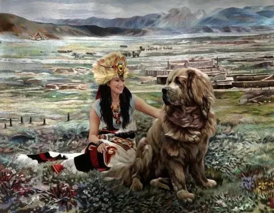 作品采用亂針繡針?lè)ê褪窭C傳統(tǒng)施毛針?lè)ㄏ嘟Y(jié)合的工藝?yán)C制,呈現(xiàn)出藏族少女與藏獒和諧相處的畫(huà)面,民族風(fēng)情濃郁,人物塑造逼真。