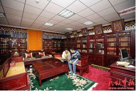 果洛古籍保護中心的研究人員閱讀《格薩爾》相關資料