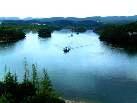 百花湖在朱昌鎮(zhèn)旁,湖中有100多個小島,以湖汊多、島嶼多見勝,遠(yuǎn)眺之下,很有幾分江南水鄉(xiāng)的韻味。游覽百花湖的最佳時(shí)間是春天,那時(shí)百花湖上就會百花盛開,姹紫嫣紅,百花湖也是因此而得名的。景區(qū)以湖光山色和巖溶地貌的自然景觀為主體,兼具秀、幽、奇、巧的特色。