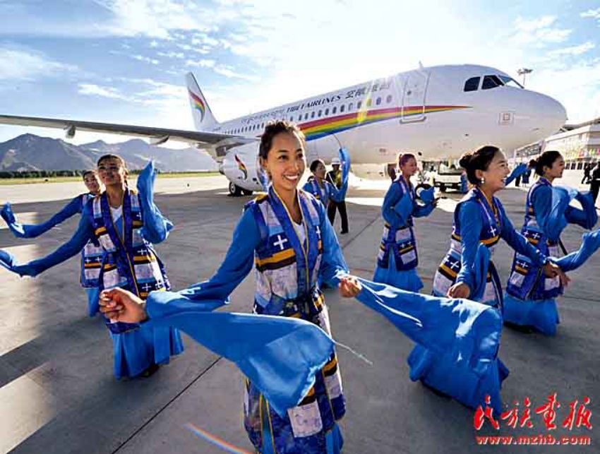 西藏已經(jīng)建成使用的機(jī)場(chǎng)有拉薩貢嘎國際機(jī)場(chǎng)、阿里昆莎機(jī)場(chǎng)、昌都邦達(dá)機(jī)場(chǎng)、日喀則和平機(jī)場(chǎng)和林芝米林機(jī)場(chǎng)。西藏還擁有自己的航空公司,圖為西藏航空有限公司成立暨首航儀式