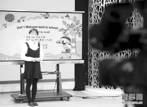 停課不停學(xué),由寧夏回族自治區(qū)教育廳制作的“空中課堂”名師專遞課程日前正式上線,學(xué)生可以在家中通過手機(jī)、電視、電腦等進(jìn)行學(xué)習(xí)。圖為銀川市金鳳區(qū)第一回民小學(xué)教師楊玉燕在錄制“空中課堂”三年級(jí)英語課程。