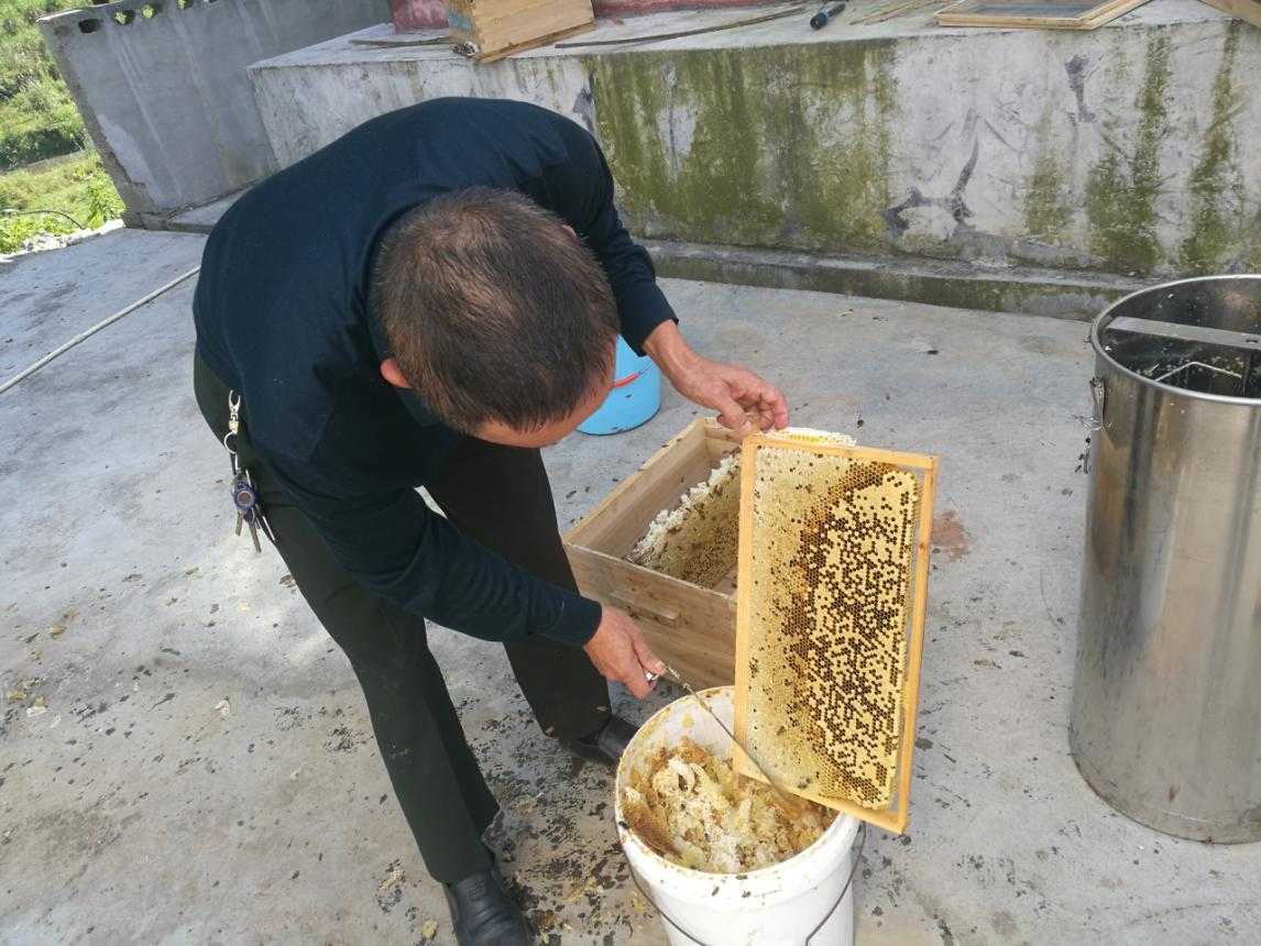 關(guān)于養(yǎng)殖、采集方面,當?shù)刂饕ㄟ^駐村干部監(jiān)管,養(yǎng)殖合作社的貨源引進,技術(shù)幫扶等開展養(yǎng)殖管理。一年中主要進行兩次季節(jié)性采蜜,養(yǎng)殖期間每周一次開箱檢查,以保證蜂筒內(nèi)蜜蜂的正常產(chǎn)蜜,到氣候適宜之時,以不同于以往的割取方式,采用先進的搖蜜機,開采蜂蜜,從而能夠不破壞蜂筒中的蜂乳及蜂皮,保證母蜂的正常產(chǎn)蜜。采集完成之后,通過低溫避光的方式,放入冷凍室低溫保存,隔絕會發(fā)生化學反應(yīng)的金屬與氣味污染,從而保證蜂蜜的新鮮。