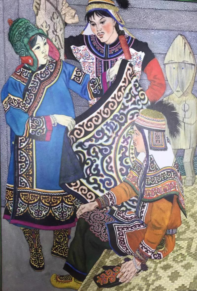 那乃族的插畫,有的用細(xì)膩的繪畫語言真實再現(xiàn)了那乃族的生活場景,有的用生動形象的裝飾語言表現(xiàn)了那乃族的傳說故事。