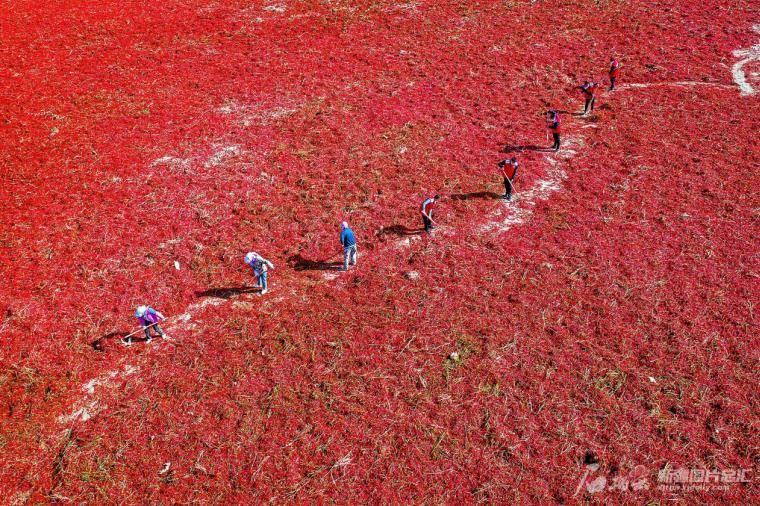 10月10日,農(nóng)民在晾曬辣椒。眼下,哈密國(guó)家農(nóng)業(yè)科技園區(qū)千余畝線辣椒喜獲豐收。今年,哈密國(guó)家農(nóng)業(yè)科技園區(qū)以政府引導(dǎo)、合作社牽頭的模式調(diào)整產(chǎn)業(yè)結(jié)構(gòu),引種用水省、效益高的訂單辣椒,助力農(nóng)民增收致富。李華攝