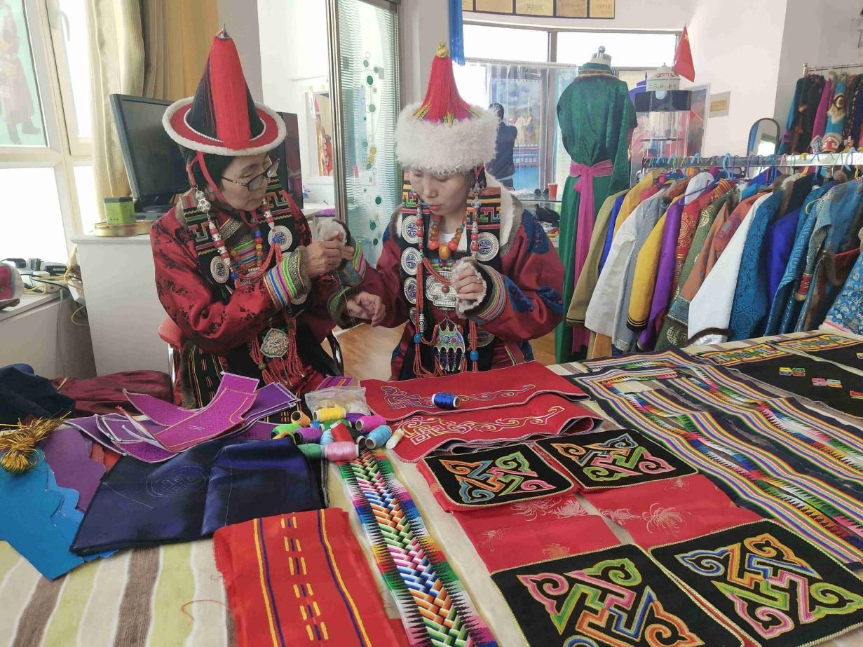 肅北蒙古族服飾發(fā)展演變歷經(jīng)約400多年,先民從我國東北大小興安嶺中出游并西遷與新疆衛(wèi)拉特蒙古交融,游牧于天山北麓和阿爾泰山一帶,受到衛(wèi)拉特蒙古文化影響并形成和碩特蒙古部落。十七世紀(jì)初葉,和碩特部遷居青藏高原,又與當(dāng)?shù)夭刈鍙V泛交流,受到藏民族文化影響的同時(shí),傳承保留和發(fā)展了本民族特有的服飾文化,還逐步形成了深深的地域和民族特色。元代至今,逐漸形成了極具肅北蒙古族特性的服飾類型,其款式風(fēng)格、面料色彩、縫制工藝在蒙古族服飾當(dāng)中別具一格,藝術(shù)價(jià)值極高。