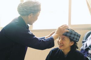 訂做講究量體裁衣,蘇阿姨有個(gè)小本子,專門記錄客人的身量。上面能看到衣長、腰長、袖長、領(lǐng)長和住址,可唯獨(dú)不知道她們真正的名字。布依族女人的名字,一生都在變化。婚前的小名,一旦結(jié)婚有了孩子就變成“媽”加長子(女)的名字。等做了奶奶,又會(huì)變成“奶”加長孫子(女)的名字。我仿佛看到她們把自己越縮越小,隱身在家庭之后。