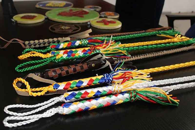 科爾沁繩結技藝是通遼市科爾沁區(qū)一項傳統(tǒng)民間技藝,它是從中國古老的繩結技藝發(fā)展而來,逐漸形成了自己的特色和體系,產(chǎn)生了《蒙古馬鞭》、《蒙古捕夢網(wǎng)》等代表作品。作品主要來源于游牧民族生活中的日常實用,比如馬龍?zhí)?,馬鞭,固定蒙古包的綁繩,蒙古服的扣子等。2018年《結繩技藝》確定為盟市級非物質(zhì)文化遺產(chǎn)項目。近年來隨著國家對非物質(zhì)文化遺產(chǎn)的重視和大眾對于“中國結”的關注,科爾沁繩編又重新走入人們的視野??茽柷呃K編技藝傳承人經(jīng)過多年的研習和挖掘,創(chuàng)造了很多經(jīng)典作品,使這門古老的技藝煥發(fā)出新的光彩。