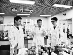 程勇(中)在指導學生做實驗。 中央民族大學供圖