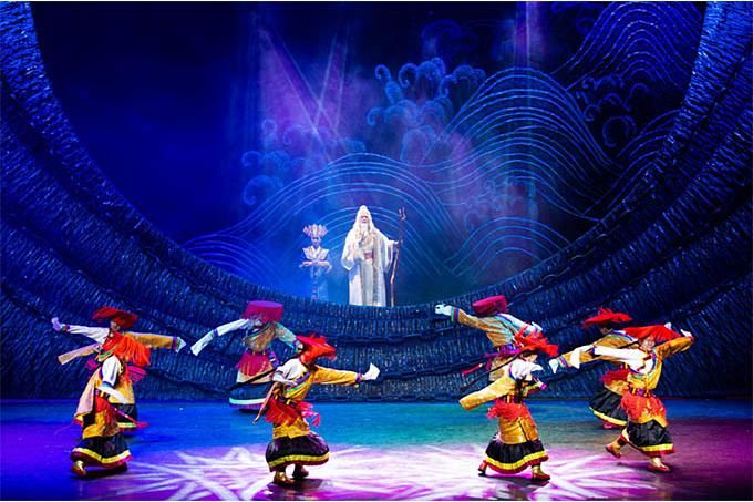 南木特藏戲已有400年的歷史,面對這樣一個彌足珍貴的“中國戲曲活化石”,主創(chuàng)人員對創(chuàng)作主題和表現(xiàn)形式斟酌再三,最后選定以“生命的奉獻(xiàn)”為創(chuàng)作起點,將《唐東杰布》以“老戲新唱”的形式呈現(xiàn)給觀眾。