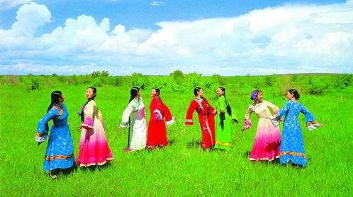 被稱為蒙古族舞蹈活化石的安代舞,是流傳內(nèi)蒙古通遼市周邊地區(qū)的一種原生態(tài)舞蹈。依據(jù)習俗,早期的安代舞表演場地,中間立一斷軸車輪或木桿(意為鎮(zhèn)妖避邪之物),參加者圍成圓圈,右手握一塊綢巾或扯起蒙古袍下擺,隨領唱(領舞者)邊歌邊舞。