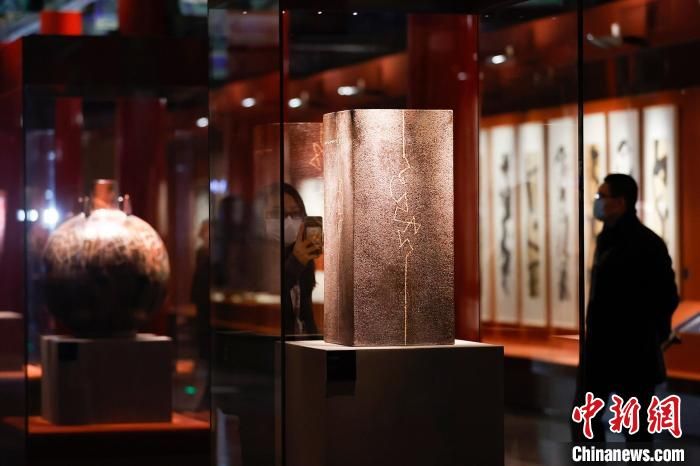 此次展覽是繼2019年“韓美林生肖藝術大展”之后,韓美林藝術第二次進故宮展覽。歷經(jīng)數(shù)十年,韓美林從散落多地的甲骨、石刻、巖畫、古陶、青銅、陶器、磚銘、石鼓等歷代文物上,搜尋記錄了數(shù)萬個古文字符號,又耗時數(shù)年將這些歷史文化遺存匯集成“天書”。古文字的神秘、歷史的曠遠、書法的韻致,以及藝術家的才情,融會貫通于一體。