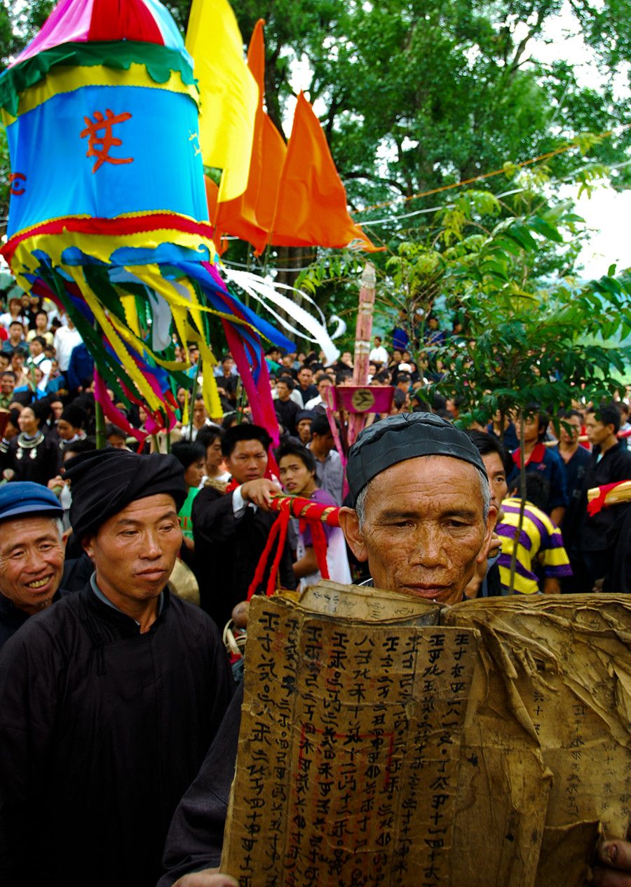 人們傳說只有醉倒了"霞神",它才能永遠(yuǎn)留在這方,才能使這里風(fēng)調(diào)雨順。當(dāng)水書先生念了最后的咒詞,祭典才在鼓樂聲和歡呼聲中結(jié)束。最后,各族系將祭肉一并聚攏,聚餐慶祝。天黑之后,人們秘密地將"霞神"收藏起來,至此,"敬霞"活動全部結(jié)束。