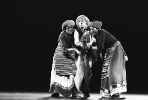 阿佳,在藏語中是大姐的意思,而老阿佳多指年齡在50歲至60歲的中年女性。在以往的藏族舞蹈作品中,老阿佳很少作為主體形象出現(xiàn)。原因在于,從舞蹈表現(xiàn)力來看,這一主題形象在編排上面臨的限制較多。若是在舞蹈語言設(shè)計(jì)上過于簡單、直白,就會導(dǎo)致觀賞性不高;若是動作過于豐富、花哨,又似乎偏離了人物的真實(shí)形象。但在《三個老阿佳》這部作品中,編導(dǎo)通過準(zhǔn)確的形象捕捉與藝術(shù)塑造,使舞臺上的老阿佳既有生活的溫度,又具備藝術(shù)的高度。