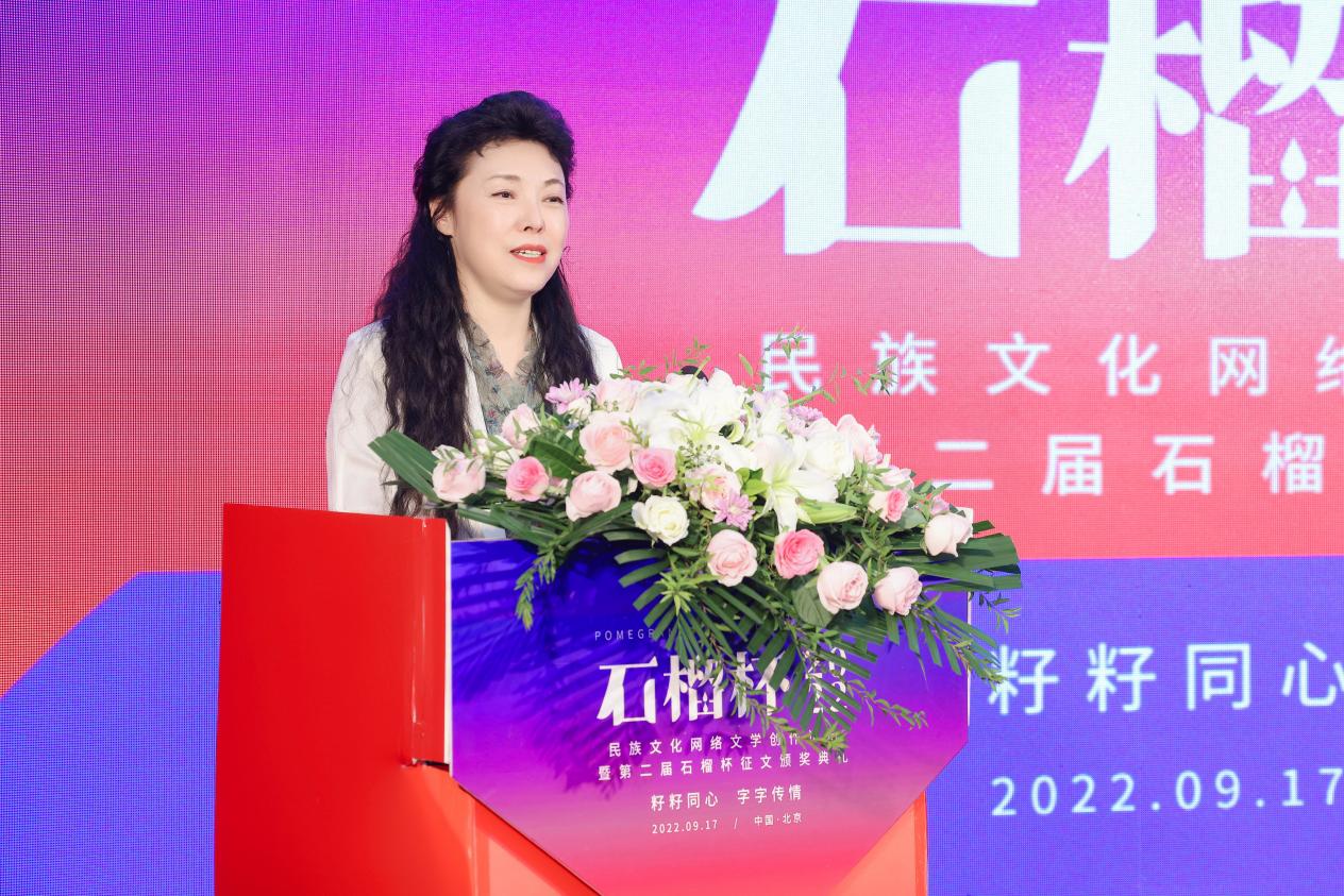 2022年9月17日,民族文化網(wǎng)絡(luò)文學(xué)創(chuàng)作論壇暨第二屆石榴杯征文頒獎(jiǎng)活動(dòng)在民族文化宮舉行。本次活動(dòng)得到了國(guó)家民委所屬中國(guó)少數(shù)民族文化藝術(shù)促進(jìn)會(huì)和中國(guó)紀(jì)實(shí)文學(xué)研究會(huì)的指導(dǎo)與支持,由閱文集團(tuán)、北京天成嘉華文化傳媒主辦,天成達(dá)星國(guó)際傳媒承辦。