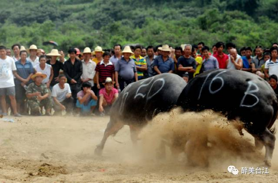 ▲ 斗牛之牛,都是專門精心飼養(yǎng)的,不從事耕地、拉車、推磨等勞作,均為雄性水牛,分為寬角、窄角兩個(gè)級(jí)別。斗牛賽制,先為淘汰賽,決斗時(shí)改為單循環(huán)賽,最后勝出者為年度牛王。斗牛場(chǎng)面十分慘烈,動(dòng)人心魄,觀眾少則數(shù)百,多則數(shù)萬(wàn)。
