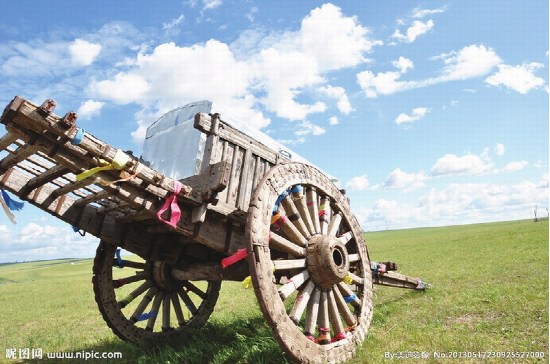蒙古族牧民常用的一種木制大輪車。多用樺木或柳木制做。車輪高約1米,車身重約百斤,可載重300—450公斤,日行約30余公里。每車用一頭牛來(lái)拉,一人可駕馭數(shù)輛,適于在草原、沙漠、雪地等行走。亦可將數(shù)十輛勒勒車首尾相接形成近百米長(zhǎng)的車隊(duì),十分壯觀,也形成了草原上特有的風(fēng)情。現(xiàn)在已多被膠皮鐵輪的軸承車所替代。另外還有一種“蒙古轎車”,是一種在勒勒車基礎(chǔ)上經(jīng)過(guò)改造專門乘人的車。其與勒勒車不同之處在于車體上有用柳條子彎曲后扎成的車棚,棚子的外面用毛氈包圍,形成一個(gè)既擋陽(yáng)光,又擋風(fēng)雨,防曬御寒的帳篷。