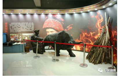 2.彝族展區(qū): 彝族是最早定居尋甸的民族,縣境內(nèi)的支系有黑彝、白彝、干彝,距今有3000多年的歷史。在漫長的歷史長河中,彝族人民創(chuàng)造了璀璨的地域文化——神秘的古彝文,原始的祭祀禮儀,別致的傳統(tǒng)民居“垛木房”,古老的彝族山歌、古歌、彝族舞蹈,獨特的婚俗“拖媳婦”,傳統(tǒng)節(jié)日“立秋節(jié)”、“火把節(jié)”以及被美譽為“活化石”的彝族服飾,每一項都蘊含著極深的文化內(nèi)涵;火把節(jié),象征著彝族人民的激情與戰(zhàn)勝自然災(zāi)害的勇氣和力量;彝族戈濮支系的獨創(chuàng)“立秋節(jié)”,通過盛大的秋場斗牛、夜間情歌對唱等形式將豐收的歡樂和喜悅傳遞四面八方。
