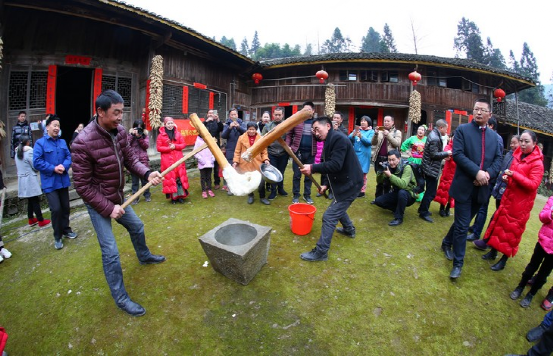 更具特色的要數(shù)正月十五趕毛狗子了。傳說毛狗子(狐貍的俗稱)喜歡偷雞吃,所以必須得趕走。趕毛狗這一天,親朋好友聚在一起,先用竹筒做成火把或用木梓油做成燈備用,再砍樹枝搭成棚子,放入草扎的毛狗子,堆放未破節(jié)的竹筒和火炮樹葉。待天黑,男女老少全部出動(dòng),在屋邊及路邊插上點(diǎn)燃的火把、燈,然后燒燃毛狗棚,這邊的人群發(fā)出“哦嗬”聲,那邊的人群高喊“趕毛狗子喲!”此時(shí),滿山遍野火光沖天,叫喊聲此起彼伏,震耳欲聾,熱鬧非凡。