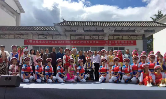 何舉庭,是何松康的大兒子,畢業(yè)后選擇在湖南長沙工作生活,目前開設(shè)的音樂培訓班有200名學員,在他一遍又一遍的介紹之下,培訓班的同學都對白族霸王鞭有了初步的認識,有的同學還對這一邊疆少數(shù)民族的歡快舞蹈產(chǎn)生了濃厚的興趣?!懊看挝叶己蛯W員們說,我的母親是白族霸王鞭的代表性傳承人?!焙闻e庭頗為自豪地說。