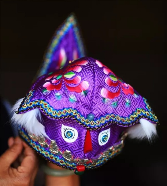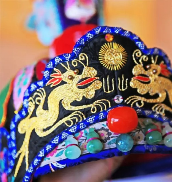 走進(jìn)楊文煥的工作室,猶如進(jìn)入一個(gè)明媚鮮艷的夢(mèng)境。首先映入眼簾的,便是那一頂頂色彩鮮艷、繡工精致的童帽:造型大方、線條流暢的獅子帽;色彩明艷、虎虎生威的老虎帽;精巧別致、活潑可愛的翹尾帽;高雅富麗、古韻悠長的公子帽;別具一格、特色鮮明的牌坊帽。