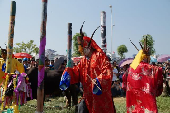 過(guò)節(jié)前一天,要“椎殺”一頭公牛,用牛頭、牛尾、牛腳、牛內(nèi)臟祭龍。祭時(shí)有法師喃經(jīng)、跳神。牛肉則分給各家各戶或拿到市上出賣,收入作為節(jié)日費(fèi)用。祭龍后二三天,各戶自拜祖先、三界仙、灶王、地主娘娘等,也是求神靈保佑五谷豐登。又用糯飯、粉蒸肉喂牛,以酬謝它耕作的辛勞,并給牛放假一天,讓它好好休息。嫁出去的女兒則帶上子女和禮品回娘家過(guò)節(jié),親戚朋友也常常登門(mén)賀節(jié),青年男女則盛裝聚會(huì)唱歌,選擇知音?,F(xiàn)在過(guò)此節(jié),宗教迷信活動(dòng)多已廢棄。增加了文體競(jìng)賽或者開(kāi)展有關(guān)生產(chǎn)生活方面的科普活動(dòng)等。