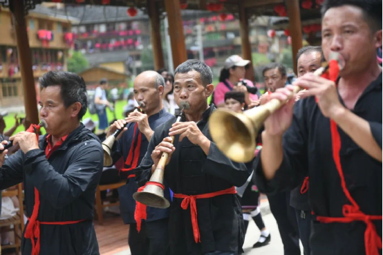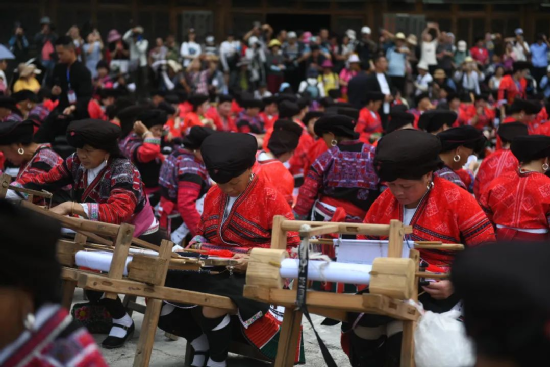 曬衣節(jié)當(dāng)天還進(jìn)行了嗩吶鑼鼓迎賓、瑤嫂長發(fā)梳妝展示、“抬金狗”送祝福、紅瑤服飾加工展示、紅瑤集體婚禮等活動,豐富多彩的民俗文化、濃郁的民族風(fēng)情,讓各地游客流連忘返。