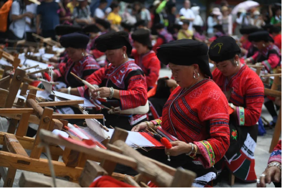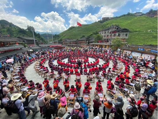 2014年,龍勝瑤族服飾(紅瑤服飾)以其精湛的手工藝和文化底蘊(yùn)入選國家級非物質(zhì)文化遺產(chǎn)代表性項目名錄擴(kuò)展項目名錄。如今的“曬衣節(jié)”已不僅是紅瑤的傳統(tǒng)佳節(jié),“農(nóng)歷六月六,廣西龍脊看紅衣”等曬衣節(jié)系列活動已成為桂林山水游的一張名片,讓各地游客充分感受多姿多彩的民族風(fēng)情。紅瑤同胞們用自己獨特的方式,為中國共產(chǎn)黨成立100周年獻(xiàn)上自己的祝福。