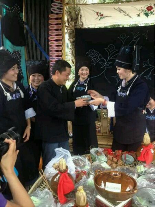 布依族的攔路酒通常都有三、五道,多的可設12道,真所謂“ 過五關斬六將” ,若是酒量平平者,早已望而卻步了。不過,長安的民族是文明的,你若不善飲,就記住別用手觸摸酒杯,只需將布依姑娘敬上的酒,示意性的飲過即可過“ 關” 。你若是海量,接下酒來,那一碗或一牛角酒就必須喝完。