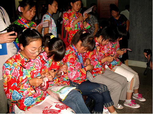 內(nèi)蒙古和林格爾剪紙是中國北方剪紙最具代表性的剪紙文化遺存之一,是由世代生活在和林格爾地區(qū)的農(nóng)牧民勞動婦女為主體創(chuàng)造的,經(jīng)過代代傳承發(fā)展,成為承載本土民族文化基因的重要的非物質(zhì)文化。二十世紀七、八十年代以來,隨著經(jīng)濟社會向工業(yè)文明的急速轉(zhuǎn)型,人們的生產(chǎn)、生活方式和觀念發(fā)生了重大轉(zhuǎn)變,和林格爾剪紙面臨消亡的境地。老一輩和林格爾民間剪紙傳承人大都生活窘困,有許多已相繼辭世,她們長達七、八十年藝術(shù)實踐所形成的這一古老文化傳承也因此面臨人亡藝絕,而年輕一代剪紙隊伍又尚未形成,和林格爾剪紙的發(fā)展出現(xiàn)了青黃不接的瀕危狀況。帶著全社會的關(guān)注,1998年7月10日,在時任和林格爾縣委宣傳部長姚子明同志的支持下,和林格爾縣成立了內(nèi)蒙古自治區(qū)第一個旗縣剪紙學術(shù)組織——和林格爾剪紙學會。和林格爾剪紙學會的成立,是和林格爾剪紙文化事業(yè)發(fā)展的一個里程碑和轉(zhuǎn)折點。多年來,和林格爾剪紙學會克服困難,深入搶救、發(fā)掘、整理和保護了縣境一大批珍貴的原生態(tài)剪紙遺存和老一輩剪紙傳承人。從1994年到2010年,共已累計搶救、發(fā)現(xiàn)珍貴的原生態(tài)和林格爾剪紙七萬余幅,發(fā)現(xiàn)和保護老一輩剪紙傳承人2600余人,其中有140余名70歲以上的老一輩剪紙傳承人,學會做為重點搶救、考察對象而開展了全年跟蹤式搶救、保護和記錄。和林格爾剪紙學會對已發(fā)現(xiàn)的老中年剪紙傳承人給予物質(zhì)獎勵和精神關(guān)懷,激活了人們對于剪紙傳承的積極性和創(chuàng)作熱情,以農(nóng)村婦女為主體的傳承群體又重新拿起剪刀,開始了剪紙的傳承和傳播。多年來,和林格爾剪紙學會在段建珺會長的帶領(lǐng)下,以“讓老大娘們重新拿起剪刀,讓年輕一代傳承剪紙”為宗旨,積極開展各類剪紙活動,努力探索剪紙在新形勢下的教育傳承和發(fā)展工作,涌現(xiàn)出以張花女、段建珺等為代表人物的一大批才華橫溢,在國內(nèi)外有影響的杰出剪紙傳承人和經(jīng)典剪紙作品。百歲剪紙大師張花女出生于清代光緒年末年,剪紙學會發(fā)現(xiàn)她時,老人已是96歲高齡。在學會的幫助下,她重新拿起剪刀,傳承和創(chuàng)作了大量剪紙,堪稱珍品。張花女的作品,將剪和紙的特性發(fā)揮到了幾盡完美的境界,圓潤而不浮華,凝重而不果板,簡約而不單簿,通俗而不失典雅。她剪的《魚龍變化》、《蒙人進城》、《碾場》等作品,反映了遠古時期仰韶文化與紅山文化、中原文明與草原文明在該區(qū)域碰撞、交流、融合的歷史遺存,具有很高的藝術(shù)考古價值。在長達一個多世紀生命的最后幾年中,張花女用剪刀和紅紙創(chuàng)造了一個當代中國剪紙的神話。