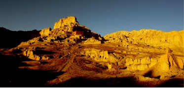 黃昏時(shí)分,我們進(jìn)入阿里札達(dá)縣,象泉河谷的臺(tái)地上,一座頹敗的天降塔驟然闖入視線,讓人猝不及防地一步便踏入歷史中。在雪域高原的梵天佛地里,佛塔觸目皆是——天降塔、菩提塔、噶當(dāng)塔等。踏上阿里的土地,你勢(shì)必遭遇一個(gè)又一個(gè)的廢墟,滿目蒼涼又讓人心生崇敬。那個(gè)曾經(jīng)重啟青藏高原信仰時(shí)代的偉大王朝,早已埋沒(méi)在時(shí)間的塵埃里,只留下這些日漸風(fēng)化的紀(jì)念碑,講述著它曾經(jīng)的奇跡和宿命。